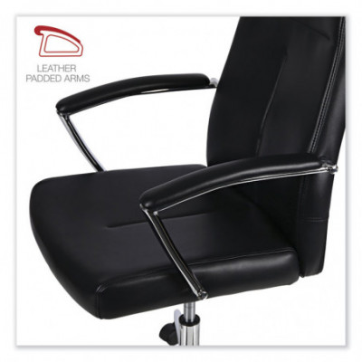 Update your home or office space with this stylish leather task chair. Clean edge design with leather seat and back provides a contemporary look. Lever adjustable seat height, tilt tension, and tilt lock help you find the right position for working or lounging. Fixed, chrome arms with leather padding for added support. Chrome base with five casters provides mobility. Sleek and modern design coordinates with most home or office décor. Supports up to 275 lbs. Some assembly required.