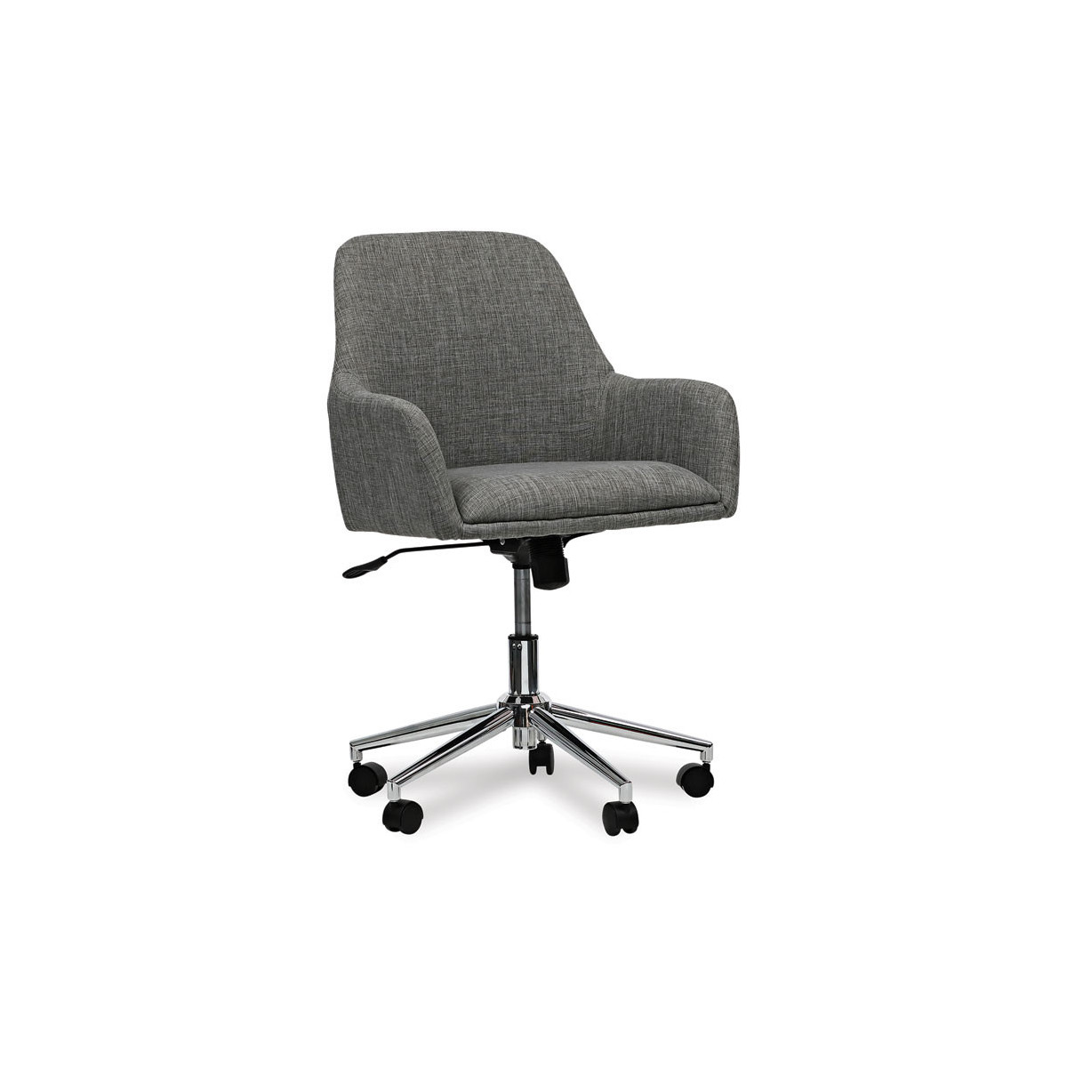 Update your home or office space with this stylish mid-century modern task chair. Rounded design with fabric seat and back provides a clean and contemporary look. Lever adjustable seat height, tilt tension, and tilt lock help you find the right position for working or lounging. Chrome base with five casters provide mobility. Smooth, rounded design coordinates with most home or office décor. Some assembly required.