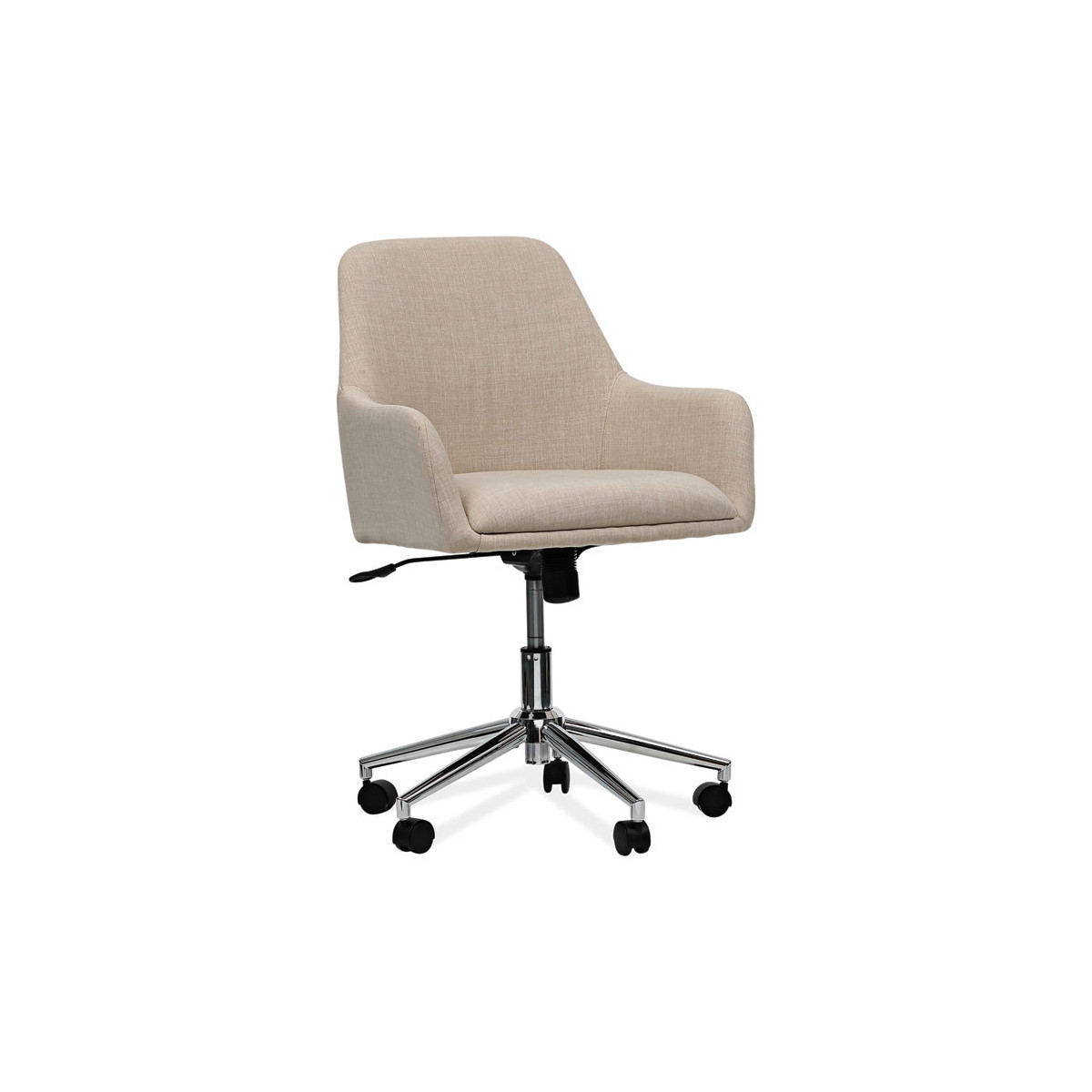 Update your home or office space with this stylish mid-century modern task chair. Rounded design with fabric seat and back provides a clean and contemporary look. Lever adjustable seat height, tilt tension, and tilt lock help you find the right position for working or lounging. Chrome base with five casters provide mobility. Smooth, rounded design coordinates with most home or office décor. Some assembly required.