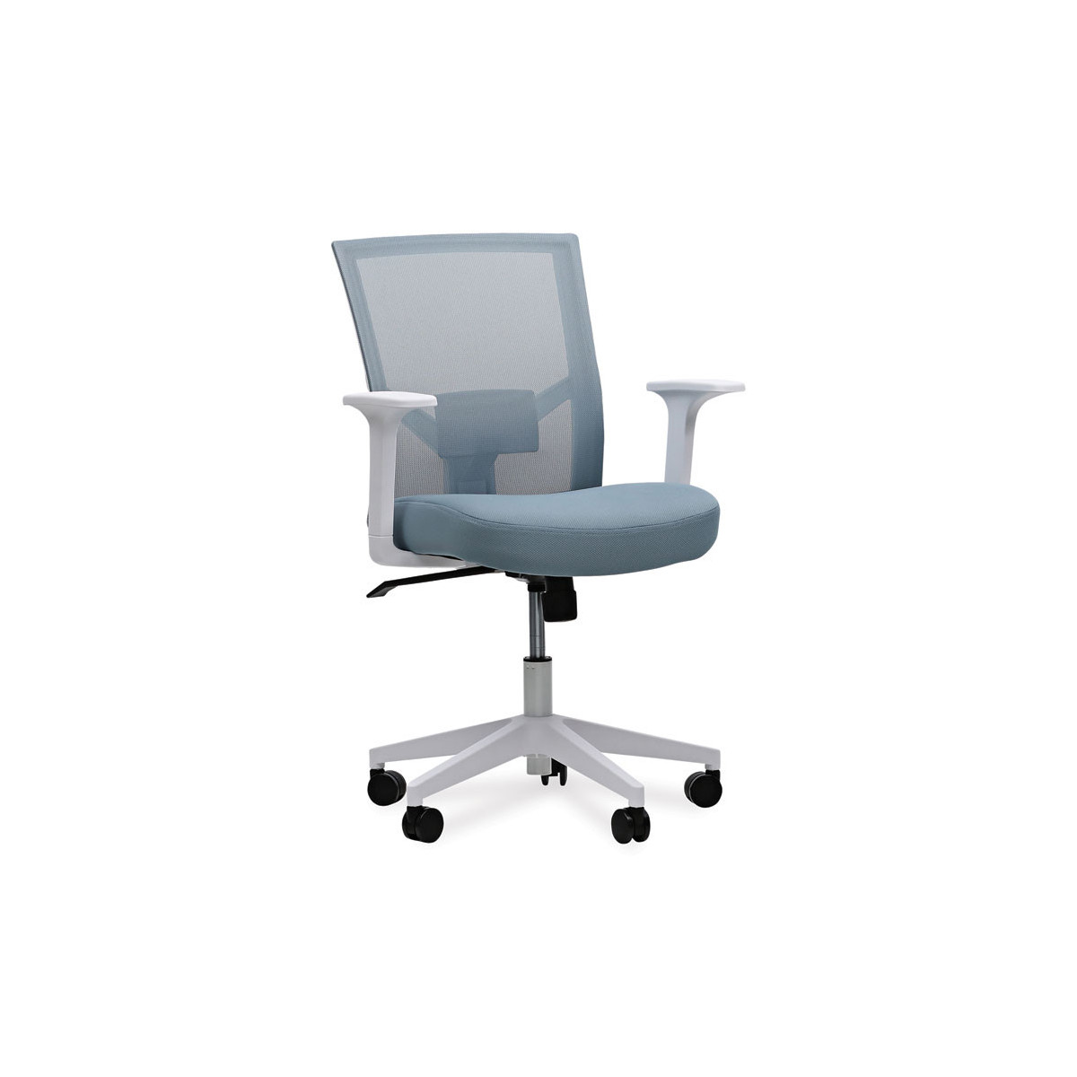 Stay comfortable while working in the mesh back task chair. The airy mesh back enhances breathability to keep your back cool. An ample padded, fabric seat provides comfort during long periods of sitting. Find the right working position with the adjustable height lever. Fixed armrests provide added support. The mini butterfly seat plate adds flexibility. Base includes five casters for mobility. Some assembly is required.