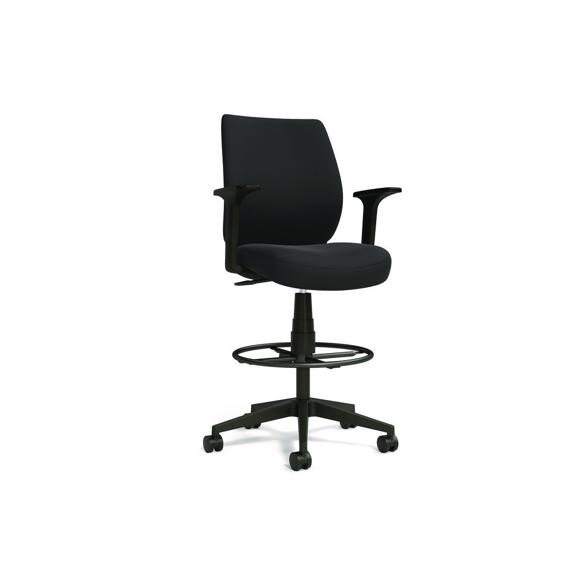 Customize your seating experience with this Alera® Wessex Drafting Stool. The tilt tension knob allows for easy reclining. With an adjustable seat height, this stool supports proper posture and optimal viewing angles. The contoured padded seat ensures ergonomic comfort. The Alera Wessex Drafting Stool features a five-star base with casters for smooth maneuverability, and a foot ring provides a convenient resting place for your feet.