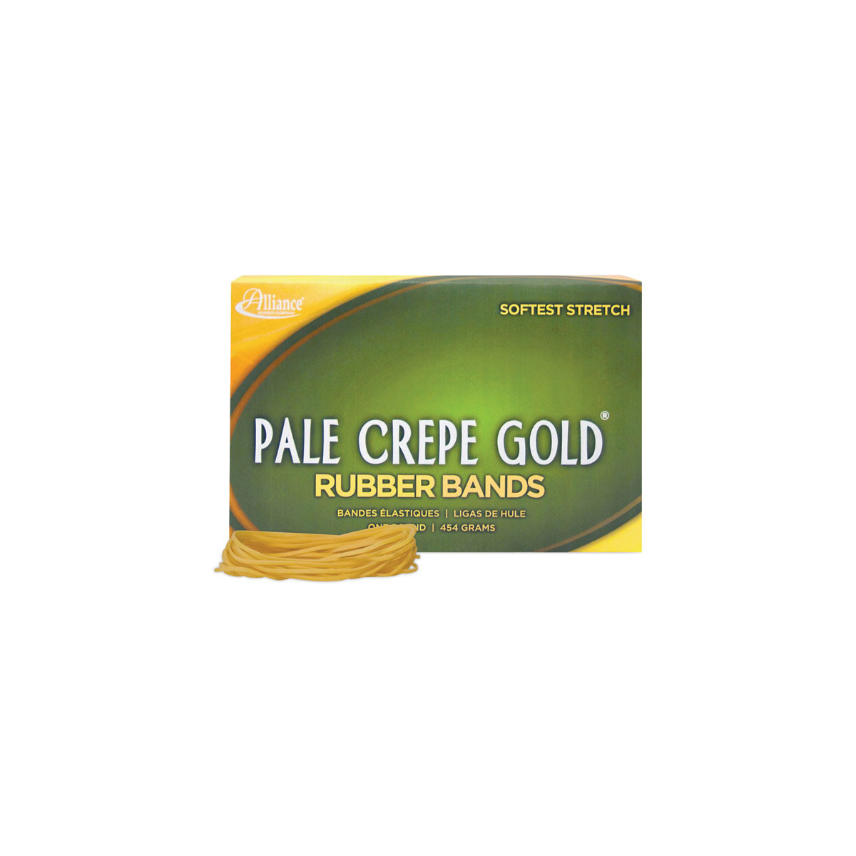 Pale Crepe Gold rubber bands feature the softest stretch and the highest natural-latex rubber content of any comparable product. A higher natural rubber content equates to a lighter-weight band with greater stretchiness and increased longevity; and as a bonus, when buying by the pound, you receive more of what you need for less. Though great as a general-purpose band for a wide range of tasks around the home, office and workplace, these bands are particularly useful for delicate- and pliable-goods packaging applications, from food to musical instruments, fine-art poster-prints to valuable trading cards. Their soft stretch also makes these bands ideal for repetitive tasks where minimizing hand-stress and fatigue or minimizing the potential for repetitive-strain injuries might be desired. Use these bands again and again without worrying about whether they'll remain strong and intact-they're designed for it.