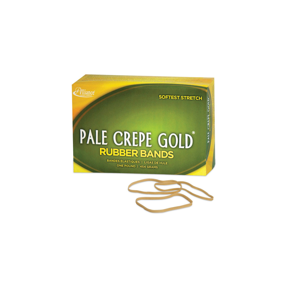 Pale Crepe Gold rubber bands feature the softest stretch and the highest natural-latex rubber content of any comparable product. A higher natural rubber content equates to a lighter-weight band with greater stretchiness and increased longevity; and as a bonus, when buying by the pound, you receive more of what you need for less. Though great as a general-purpose band for a wide range of tasks around the home, office and workplace, these bands are particularly useful for delicate- and pliable-goods packaging applications, from food to musical instruments, fine-art poster-prints to valuable trading cards. Their soft stretch also makes these bands ideal for repetitive tasks where minimizing hand-stress and fatigue or minimizing the potential for repetitive-strain injuries might be desired. Use these bands again and again without worrying about whether they'll remain strong and intact-they're designed for it.