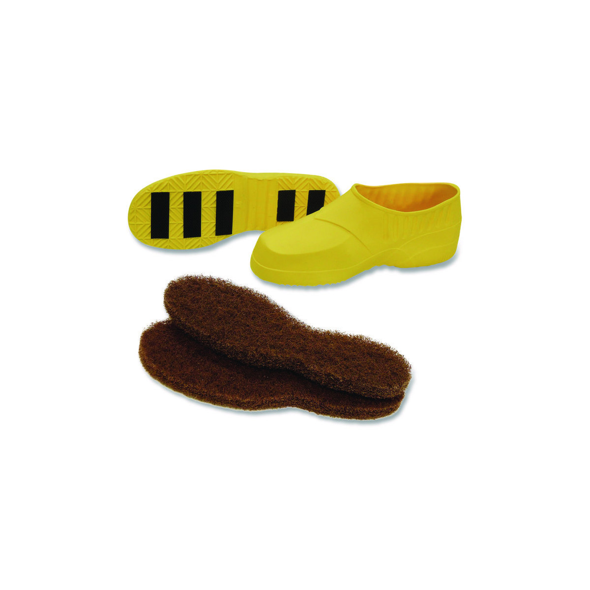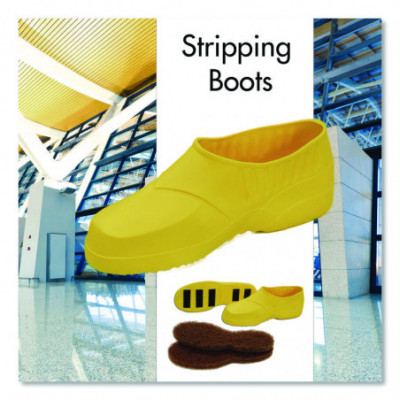 Floor stripping protective boots reduce the risk of slipping when stripping or scrubbing floors. They also keep footwear clean, dry and away from harsh chemicals. Fits over standard footwear. Replaceable soles.
