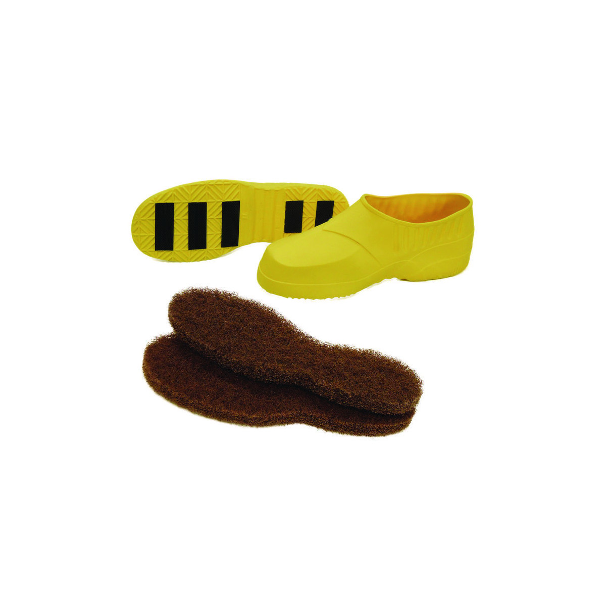 Floor stripping protective boots reduce the risk of slipping when stripping or scrubbing floors. They also keep footwear clean, dry and away from harsh chemicals. Fits over standard footwear. Replaceable soles.