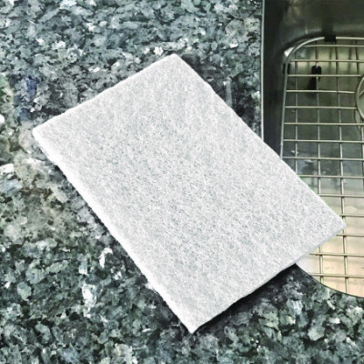 Made of polyester fibers in a dense textured, nonwoven pattern, bonded with a sturdy adhesive. This extra soft pad is for use on delicate surfaces. Ideal for porcelain sinks, tubs and toilet bowls. Also works well for cleaning rubber, vinyl, ceramic tile, dishes, stainless steel, metal furniture and fixtures.