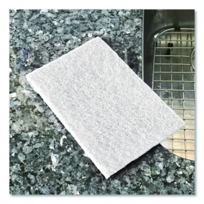 Made of polyester fibers in a dense textured, nonwoven pattern, bonded with a sturdy adhesive. This extra soft pad is for use on delicate surfaces. Ideal for porcelain sinks, tubs and toilet bowls. Also works well for cleaning rubber, vinyl, ceramic tile, dishes, stainless steel, metal furniture and fixtures.