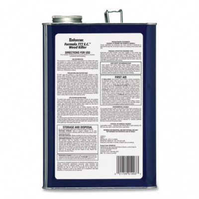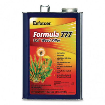 Enforcer Formula 777 E.C.™ Weed Killer is a concentrated product that contains the proven active herbicide ingredient, Bromacil, designed to interfere with the photosynthesis process of plants. Bromacil is incorporated in a biodegradable, renewable resource base with built-in emulsifiers. Effective versus hard-to-kill perennial weeds like Johnson Grass, Poison Ivy, Bermuda Grass, and more. Provides control of all vegetation for up to one season. Very low toxicity to both man and animals. Allows for economical water dilution to be applied as a spray on non-cropland areas, where bare ground is desired.