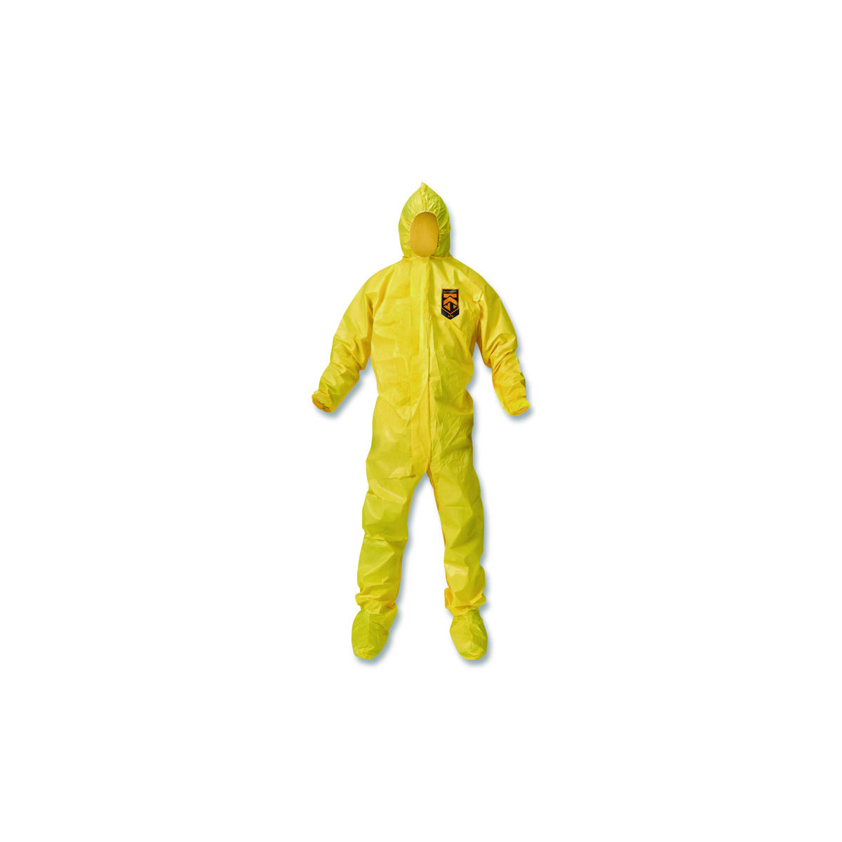 A70 Chemical Spray Protection Coveralls, Elastic Wrists, Ankles, Hood and Boots, Large, Yellow, 12/Carton