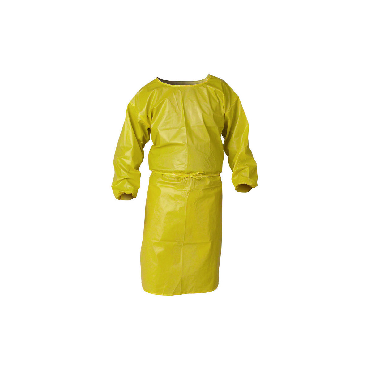 KleenGuard™ Personal Protective Equipment (PPE) enables rather than inhibits allowing for maximum productivity and safety for you and your employees. If you or your employees are working in an environment where liquid and dry chemicals are present, you need the right protection equipment. You can trust the KleenGuard™ A70 Chemical Spray Protection Smocks for comfort and protection. The KleenGuard™ A70 protective garments are made of a 1.5 mil polyethylene-coated fabric, which is resistant to many water-based liquids, greases and oils and liquid chemical splashes. They feature a wick-away lining for enhanced comfort and the seamless front gives the wearer more protection in the primary exposure area. This smock is 52 inches long and features bound seams and neck for extra protection, elastic wrists and shoulders and back neck snaps. Making the right Personal Protection choice is difficult. Perform with distinction with KleenGuard™ Personal Protective Equipment (PPE).