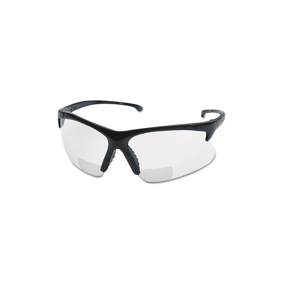 Safety eyewear readers have a stylish and ergonomic nylon frame. High-performance polycarbonate lenses are sturdy and provide a clear field of vision. Precise placement of diopter insert within lens helps prevent eyestrain, headaches and accidents.
