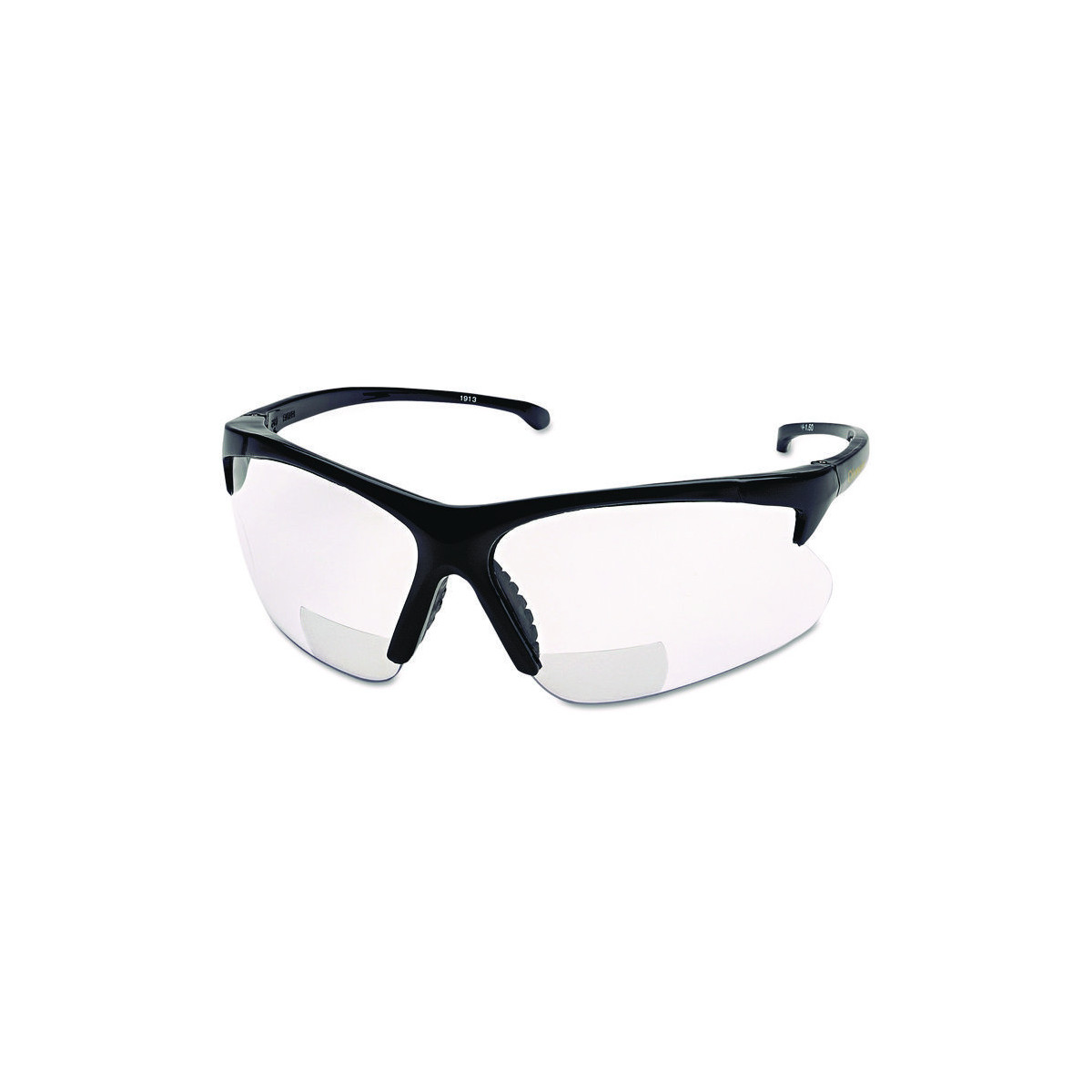 Stylish, ergonomic frame. Soft, comfortable, self-adjusting, rubber nose pad. Cheater style with diopter for vision assistance. Base Curve 7.