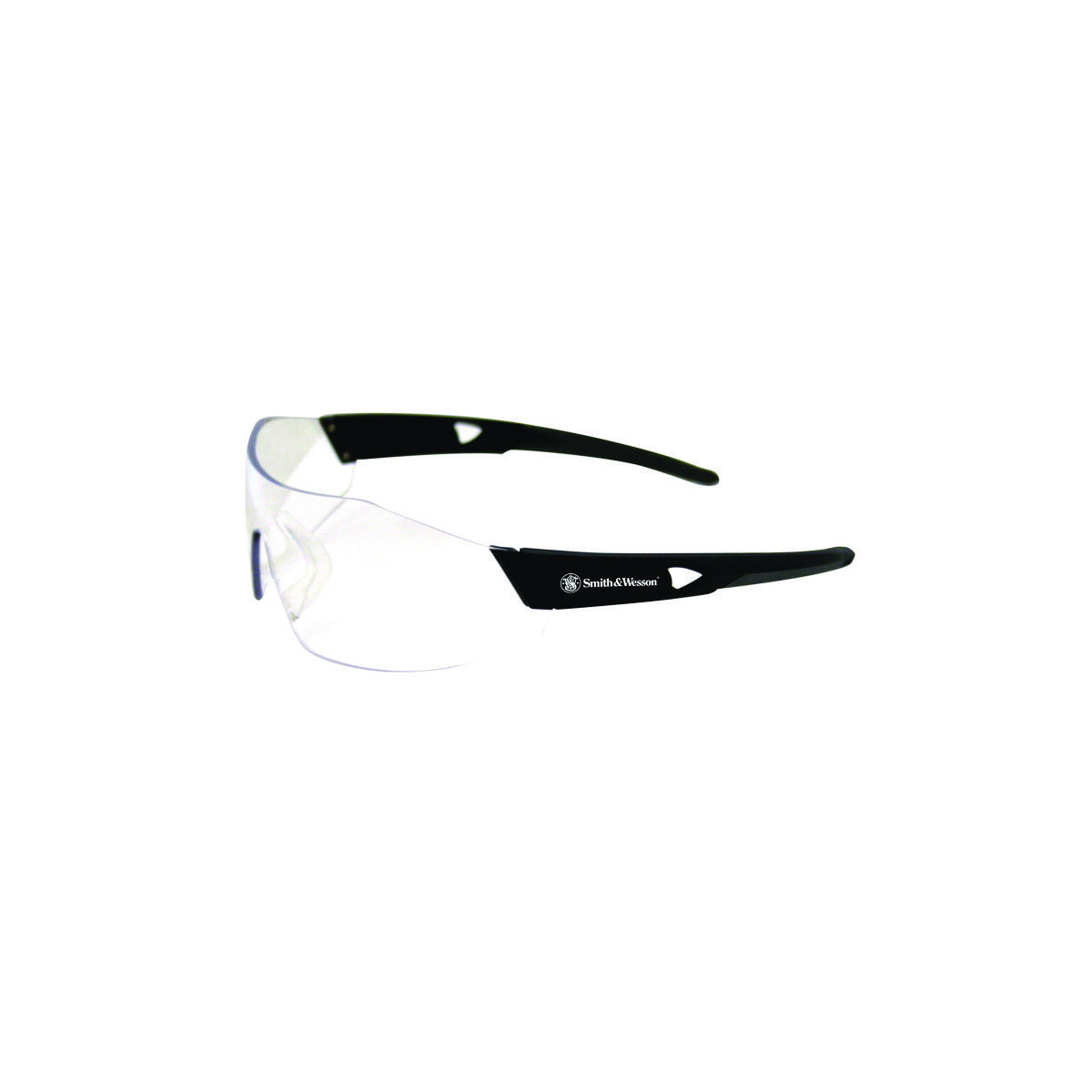 Do you need safety glasses that are designed to transition seamlessly from work to recreation? Smith & Wesson® 44 Magnum Safety Glasses provide all-day comfort and protection, in comfort and style. The minimal black frames hold clear one-piece lenses, for maximum visible light transmission. The safety glasses have a 4c x 7c base curve, which gives you the benefit of the lens hugging your face both side-to-side and up-and-down. They are also scratch-resistant and feature an anti-fog coating for use in humid environments. They are built for comfort, with soft touch rubber temples that contour around the head, a flexible nose piece that conforms to various nose shapes, and air vents on the temples to maximize air flow. These glasses provide 99.9% UVA/UVB/UVC protection and meet both ANSI Z87.1+ standards for high impact. No matter where you're using them, Smith & Wesson® Caliber Safety Glasses help deliver the comfort and protection you need.