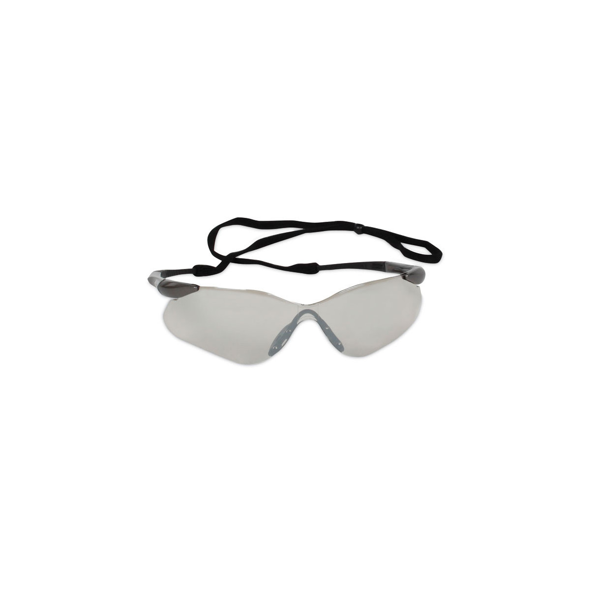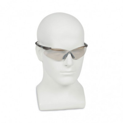Ultra-lightweight frameless design. No-brow design increases upwards peripheral vision and limits interference with hard hat suspension systems. Polycarbonate lenses provide 99.9% UVA/UVB/UVC protection to help prevent eye damage like cataracts, retinal damage, and other conditions that can cause temporary vision loss. The wraparound frame has a base curve of 8.25 that extends the range of peripheral protection, as well as soft touch temples for comfort. Each pair of glasses come with a neck cord for securing them, so that the glasses are ready to protect at a moment's notice. The safety eyewear is manufactured to comply with the ANSI / ISEA Z87.1+ standard for personal eye protection.