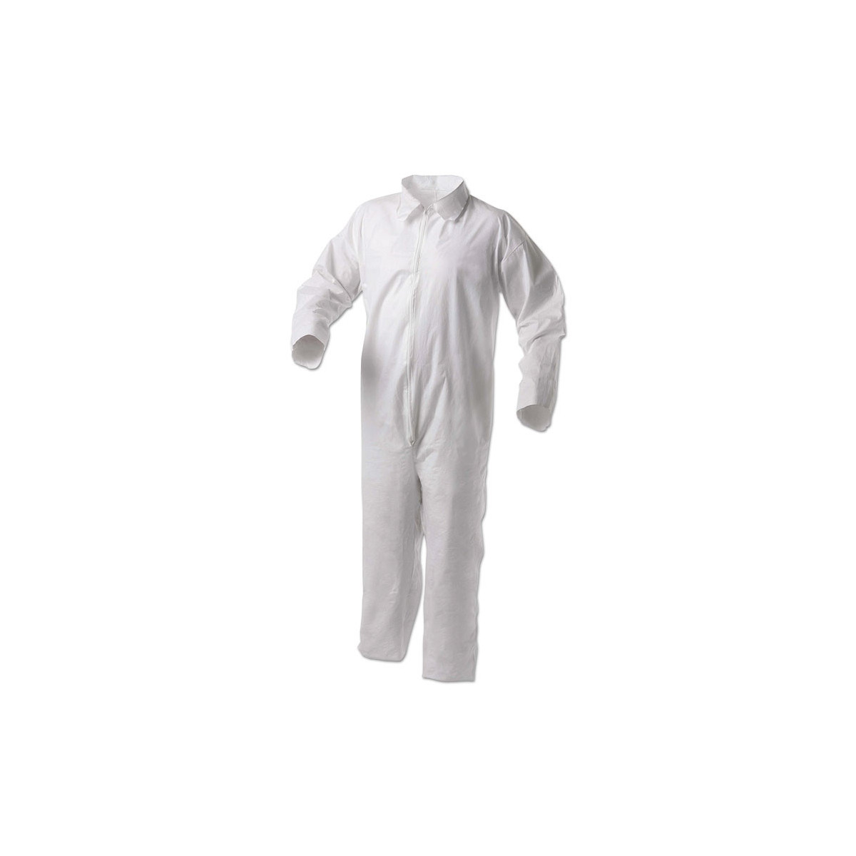 KleenGuard™ Personal Protective Equipment (PPE) enables rather than inhibits – providing for safety and productivity for you and your employees. When you're looking for an economical way to help protect your workers, KleenGuard™ A35 Coveralls for Non-Hazardous Particulate and Light Liquid Splash Protection are an excellent choice. These disposable, lightweight coveralls with zippered front are made of microporous film-laminated material that helps protect against dry particulates and light splash. These safety coveralls provide protection during tasks like general industrial manufacturing and maintenance, laboratory work, and painting – and help protect workers from dust, dirt and light splashes. KleenGuard™ A35 Coveralls meet design minimums in ANSI/ISEA 101-2014 (R2019) sizing standards. In addition, this product is eligible for recycling via RightCycle™ (when used in non-hazardous applications as classified by federal, state and local regulations). Making the right Personal Protection choice is difficult. Perform with distinction with KleenGuard™ Personal Protective Equipment (PPE).