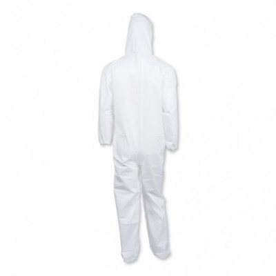 These liquid and particle protection coveralls are made of microporous film laminate with zipper front, flap over zipper and elastic in the back for improved protection.