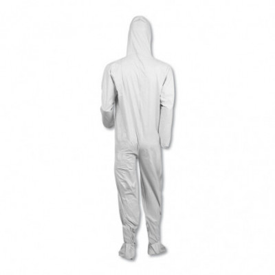 KleenGuard™ Personal Protective Equipment (PPE) enables rather than inhibits allowing for maximum productivity and safety for you and your employees. When your workers are in nonstop contact with liquid splashes and particles, KleenGuard™ A40 Liquid and Particle Protection Coveralls are a great addition to offer your team comfortable protective clothing. Features to provide more protection include the seamless front (for primary exposure area) and 1 inch zipper flap. They feature REFLEX design, which offers excellent fit and comfort (with elastic in the back) and freedom of movement. Made of breathable, microporous film to keep out debris, non-hazardous liquid chemicals and dry particulates, the KleenGuard™ A40 material gives your employees a better liquid barrier and a better particulate barrier than the leading competitor. These coveralls with hood pass NFPA 99 for antistatic materials, and pass ASTM F1670 testing for penetration of blood and bodily fluids. Popular industries using this product include liquid handling, aviation, pharmaceutical manufacturing, general manufacturing and so much more. Making the right Personal Protection choice is difficult. Perform with distinction with KleenGuard™ Personal Protective Equipment (PPE).