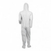 These liquid and particle protection coveralls are made of microporous film laminate with zipper front, flap over zipper and elastic in the back for improved protection.