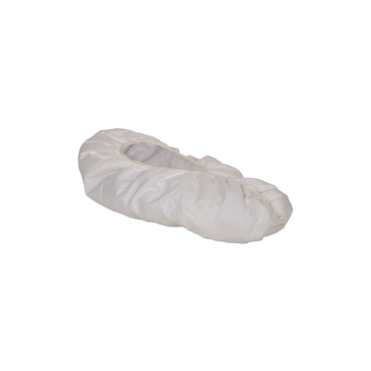 Offering your team comfortable protective clothing is a must, and KleenGuard™ A40 liquid and particle protection disposable shoe covers are a great addition. Each single-use booty measures is 7" high and features an elastic top. Made of breathable, microporous film to keep out debris, non-hazardous liquid chemicals and dry particulates.