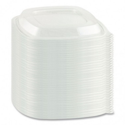 Inner/outer double-seal provides a leak-resistant seal. Large textured tabs, provide for easy opening by customers. An interlocking feature on the bowl and lid assures positive stacking on display or in the bag.