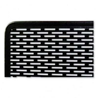 Strong, professional grade punched metal with decorative urban style slotted pattern. High quality satin finish complements any décor. Features protective feet to prevent wear and scratches on the desktop surface. Reinforced rounded edges provide durability and attractive detailing. Securely displays and organizes magazines, catalogs, files and literature on your desktop, keeping them within reach. The generous front panel provides four-sided base protection and structure to the contents so they won't fall out.
