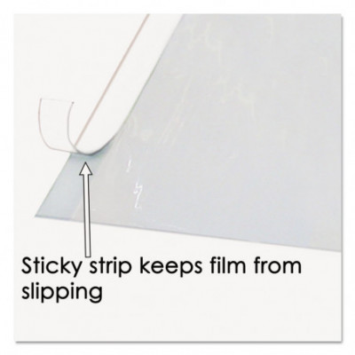 Hinged Top Protector—Adhesive strip at top acts as a hinge to prevent shifting while allowing access to papers underneath. Static cling keeps document in place.
