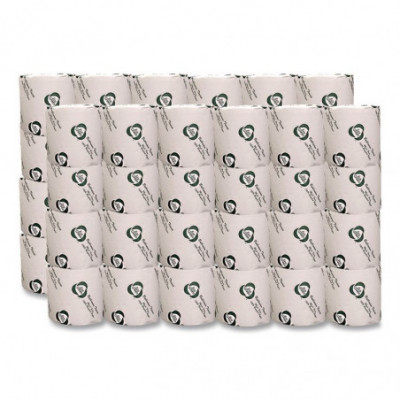 Offer hygienic washroom use for guests with these bath tissue rolls. Provides adequate supply for quick reloading on dispensers. Made from 100% recovered paper fiber that's free of ink, dye, fragrance and chlorine for safe, gentle cleanups. Fits standard roll holders/dispensers.