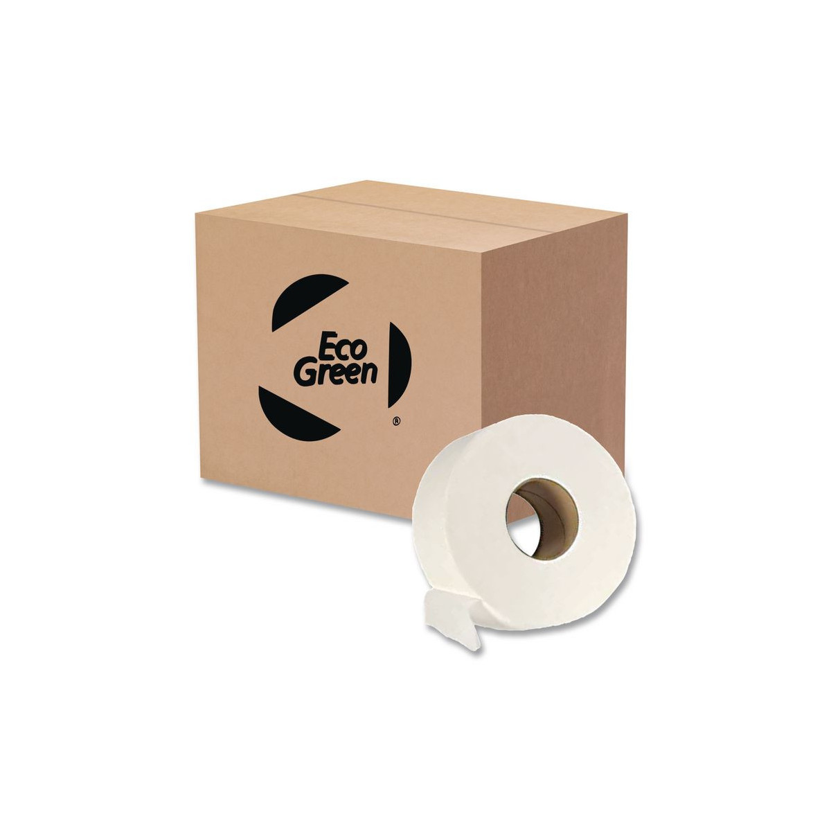 Replenish dispensers in employee or customer bathrooms with these rolls of bath tissue. Two-ply construction ensures excellent cleaning capability. Contains no added inks, dyes, or fragrances. Fits most universal jumbo roll bath tissue dispensers.