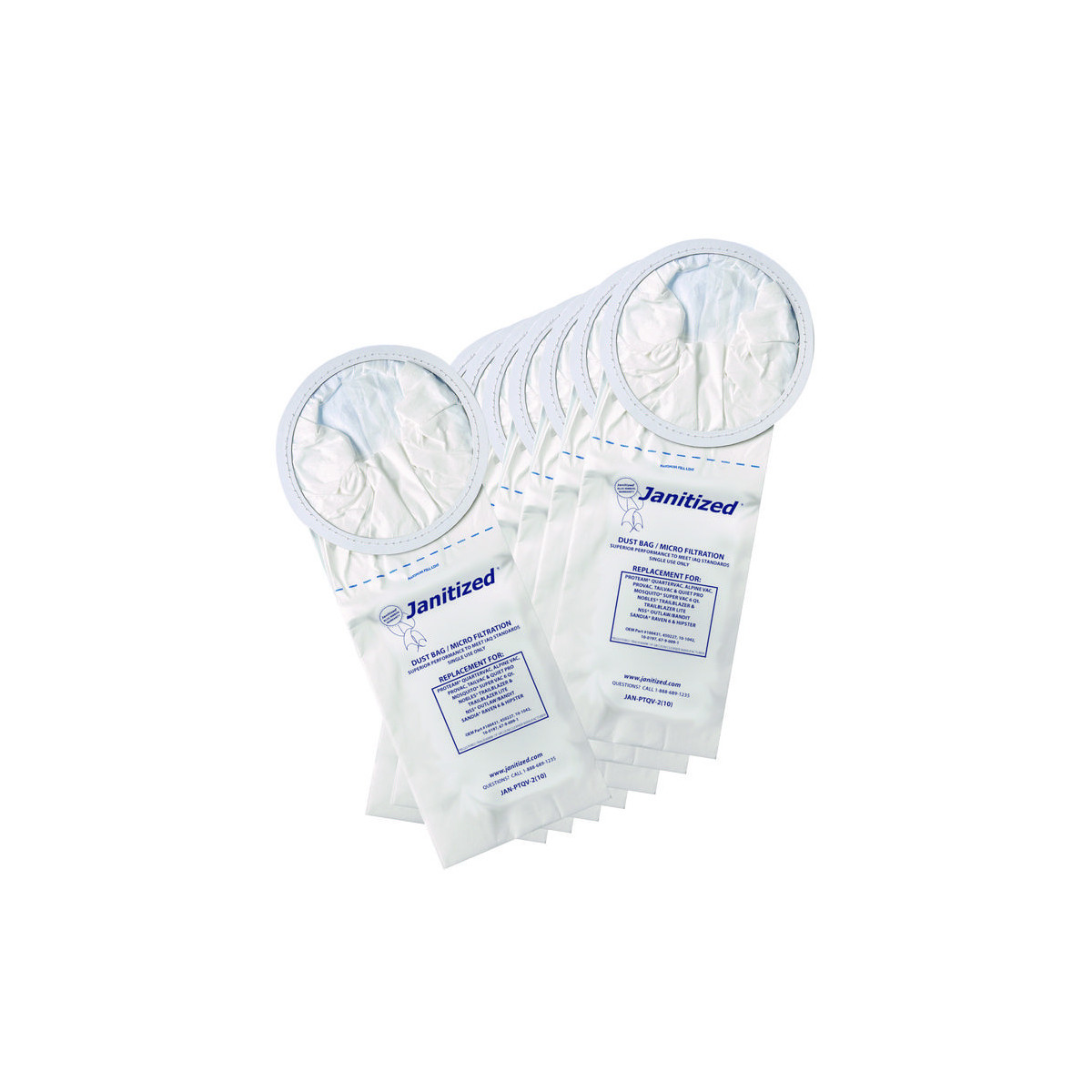 Designed specifically for commercial use. Premium filters and vacuum bags that meet or exceed OEM filter efficiency. Each filter bag is printed to easily identify the vacuum it fits. Proper filtration is vital when cleaning to prevent allergen and harmful particulates from being released back into the air. Janitized Vacuum Filter Bags provide indoor air quality, worker safety and facility clean air management.