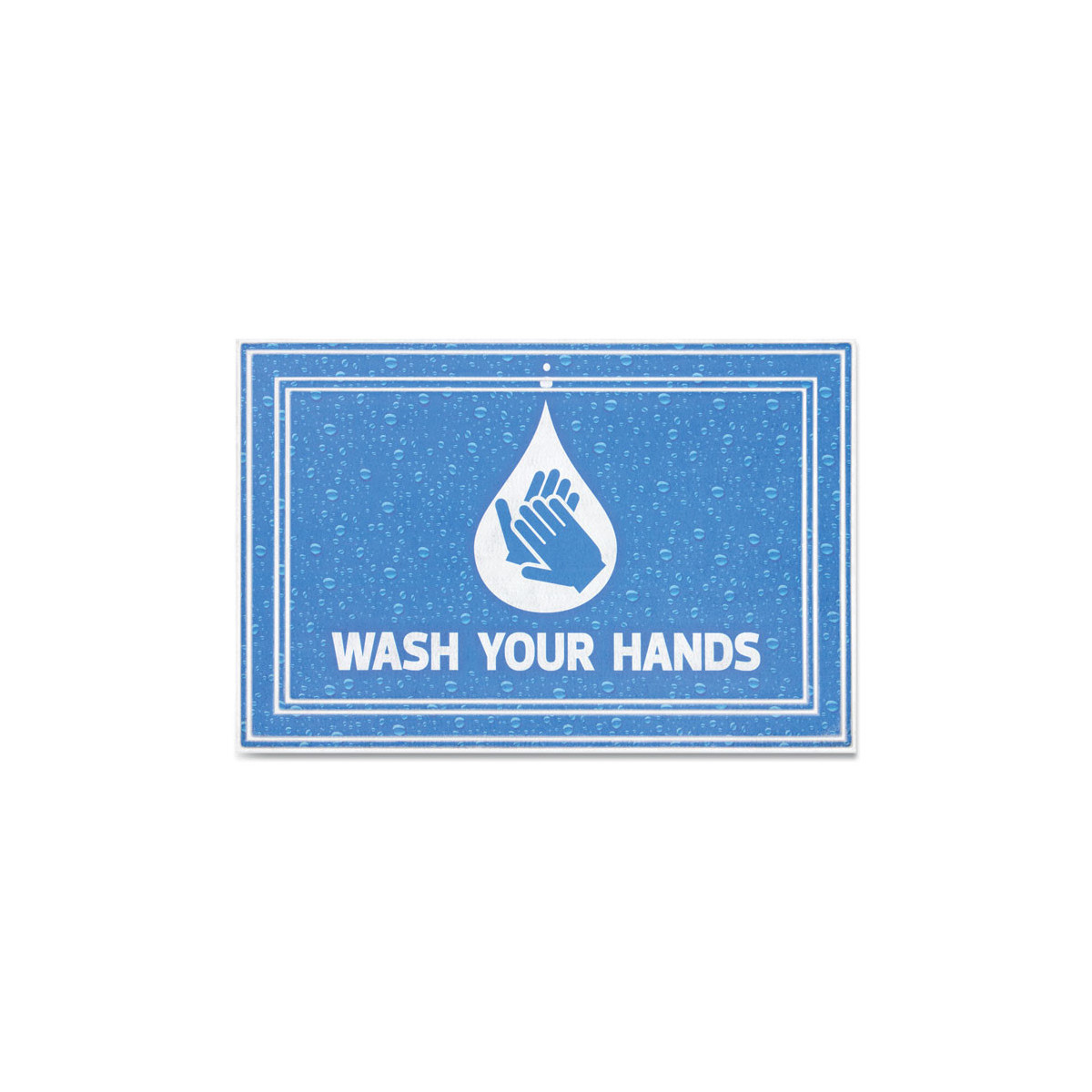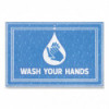 Social Distancing Message Mats, White Printed Message: Wash Hands, 36" x 24", Blue Surface