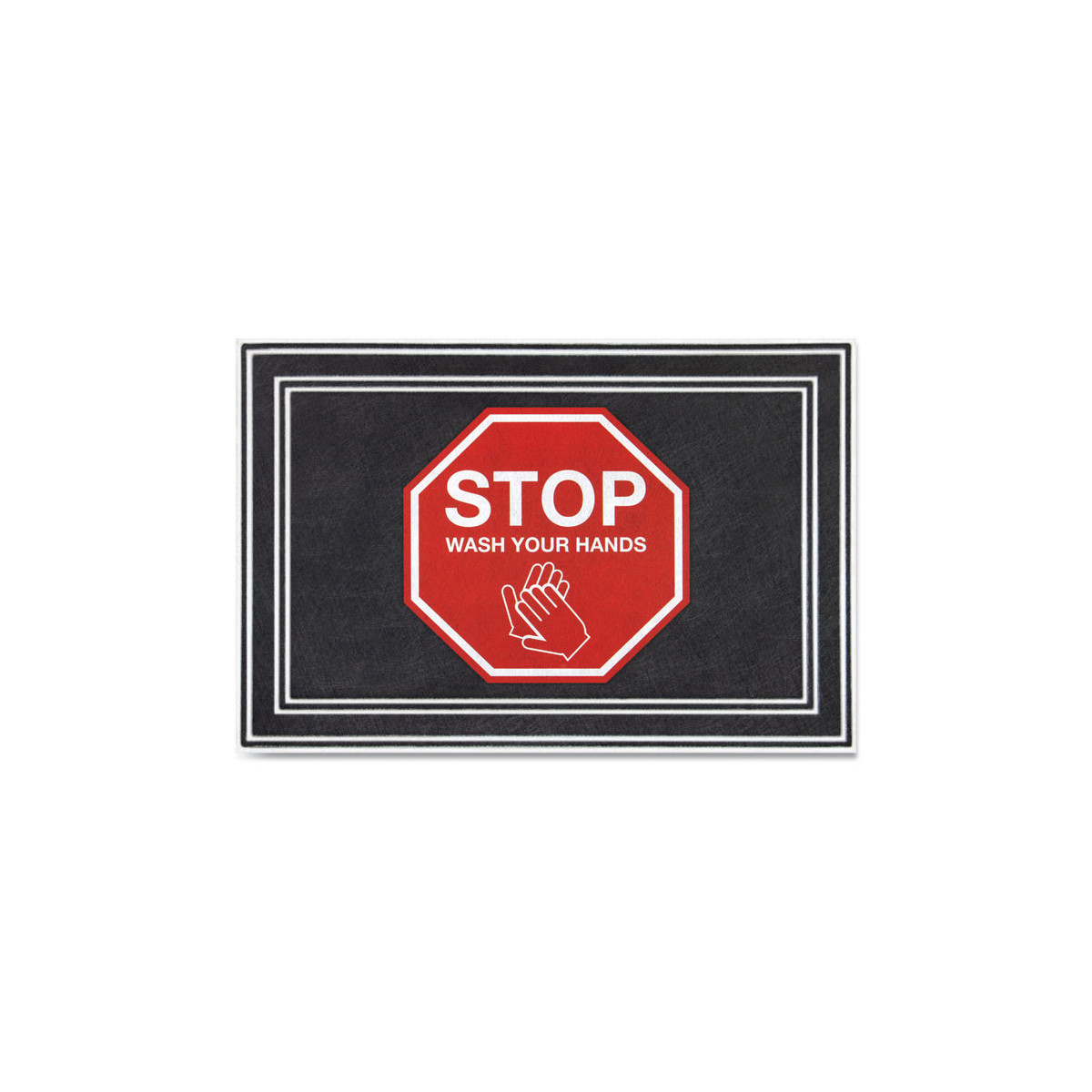 Social Distancing Message Mats, White/Red Printed Message: Stop - Wash Your Hands, 36" x 24", Charcoal Gray Surface