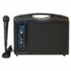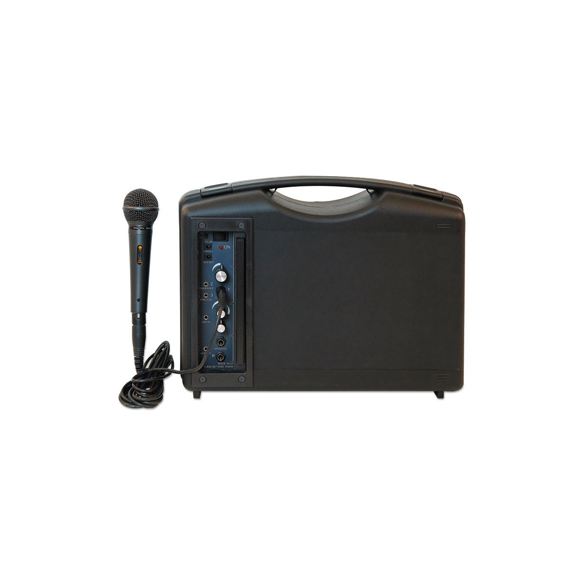 A complete presentation system built into a rugged, compact carrying case. Reach up to 1,000 people outdoors or in rooms up to 10,000 square feet. Using Bluetooth wireless technology, stream audio wirelessly from your smartphone, tablet, or any other Bluetooth® enabled device. By adding a second Wireless Mic Kit (sold separately) two presenters can be wireless simultaneously with the freedom to roam within a 300 ft. radius. Powered by ten D-cell batteries for up to 200 hours of talk time or choose optional rechargeable NiCad battery pack.