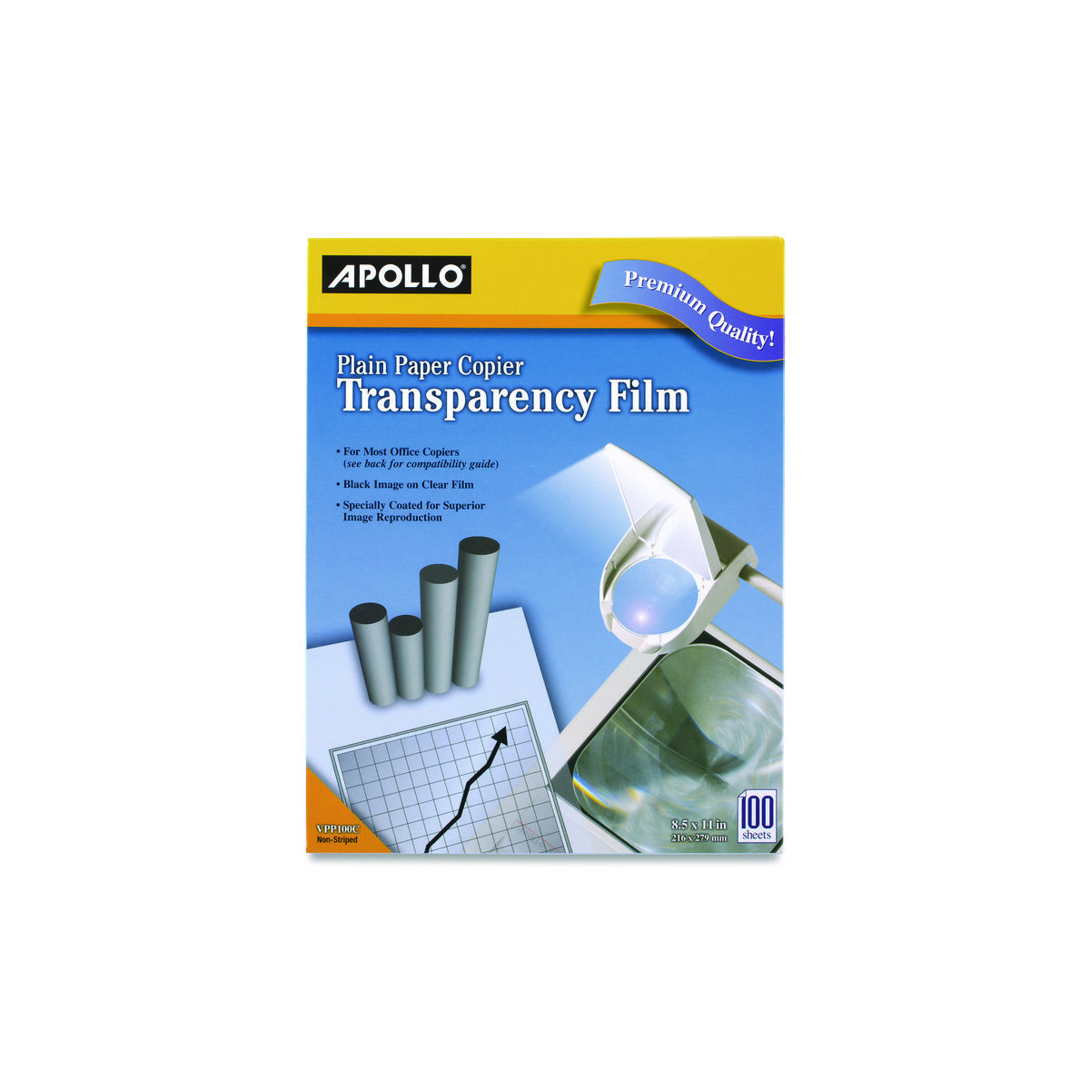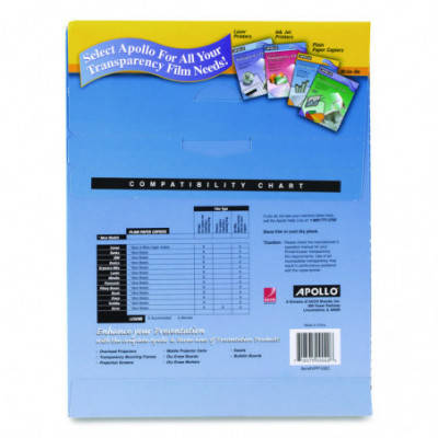 Create stunning overhead projection presentation materials with Apollo® Transparency Film. Exceptional-quality, clear film provides superior marking adhesion.