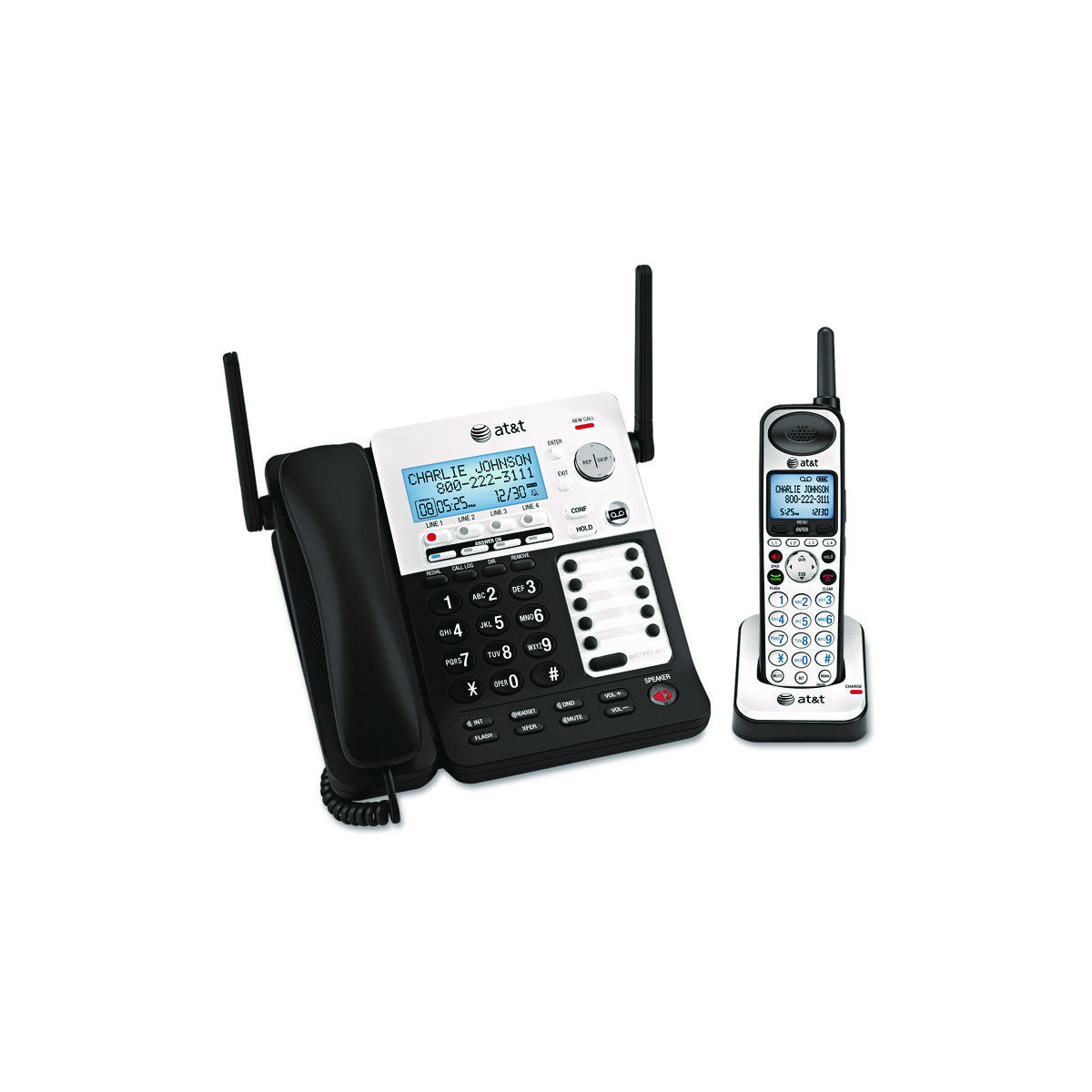 Four-line SynJ® system base is expandable up to ten handsets or desksets. Includes a separate mailbox and auto-attendant voicemail on each line. The large backlit display on the base and each handset is easy to read. Features three-way calling, speed dial, redial, mute, hold, selectable ring tones and remote access.
