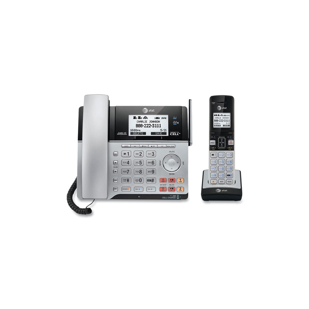 Make and take calls through your landline and mobile numbers. Bluetooth® Connect to Cell™ technology lets you use your cellular plan to make and receive calls on the corded or cordless handset. Expandable system with Softphone Call Manager allows you to access Lync, Skype, VoIP and your landline from your laptop or desktop PC. Built-in USB dock can charge two mobile phones simultaneously, and both the corded and cordless phone can notify you if your mobile devices receive a text, email or calendar reminder while charging. Reliable DECT 6.0 digital technology enhances audio quality, ensuring ultra-clear, buzz-free communication. Digital answering system helps you to avoid missing important calls.