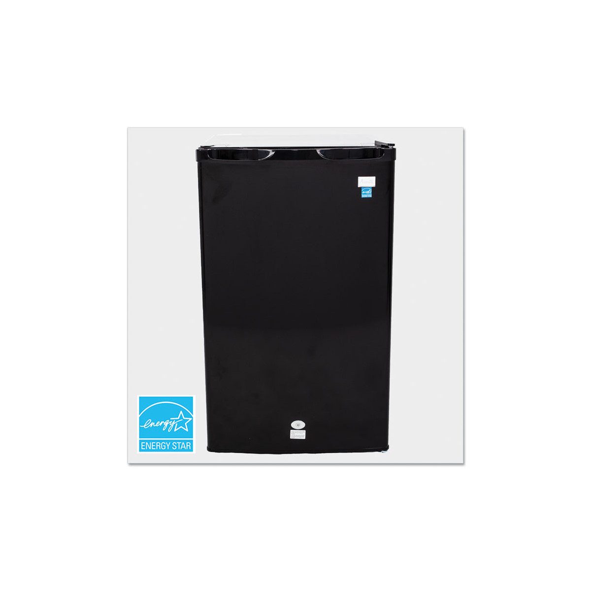 Keep your snacks and favorite beverages close by in the compact, 4.4 cubic foot refrigerator from Avanti. The perfect lockable mini fridge for the office, dorm, man cave, she shed, bar, bedroom, or anywhere you need a little extra refrigerator space. The door shelves can accommodate 2-liter and gallon bottles and six 12 oz cans, as well as other drinks and condiments. Use the adjustable, removable glass shelving to arrange salads, fruits, snacks, and other foods for easy access throughout the day. This compact fridge features automatic defrost so your foods remain fresh and cold. Select the right settings for your items with the full range temperature control.