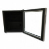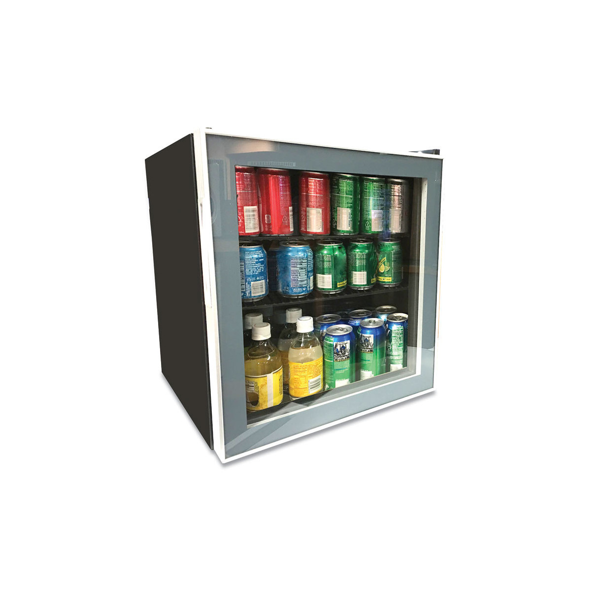 The ideal size and capacity for use in compact kitchens, offices, dormitories and hotels. Features auto defrost and full temperature control (34° F - 65° F). Black cabinet with platinum trim glass door. Dark gray interior liner. Two adjustable and removable shelves. CFC free R600a refrigerant.