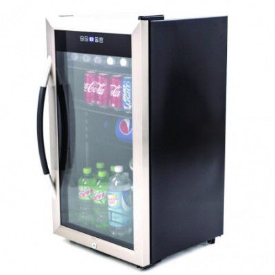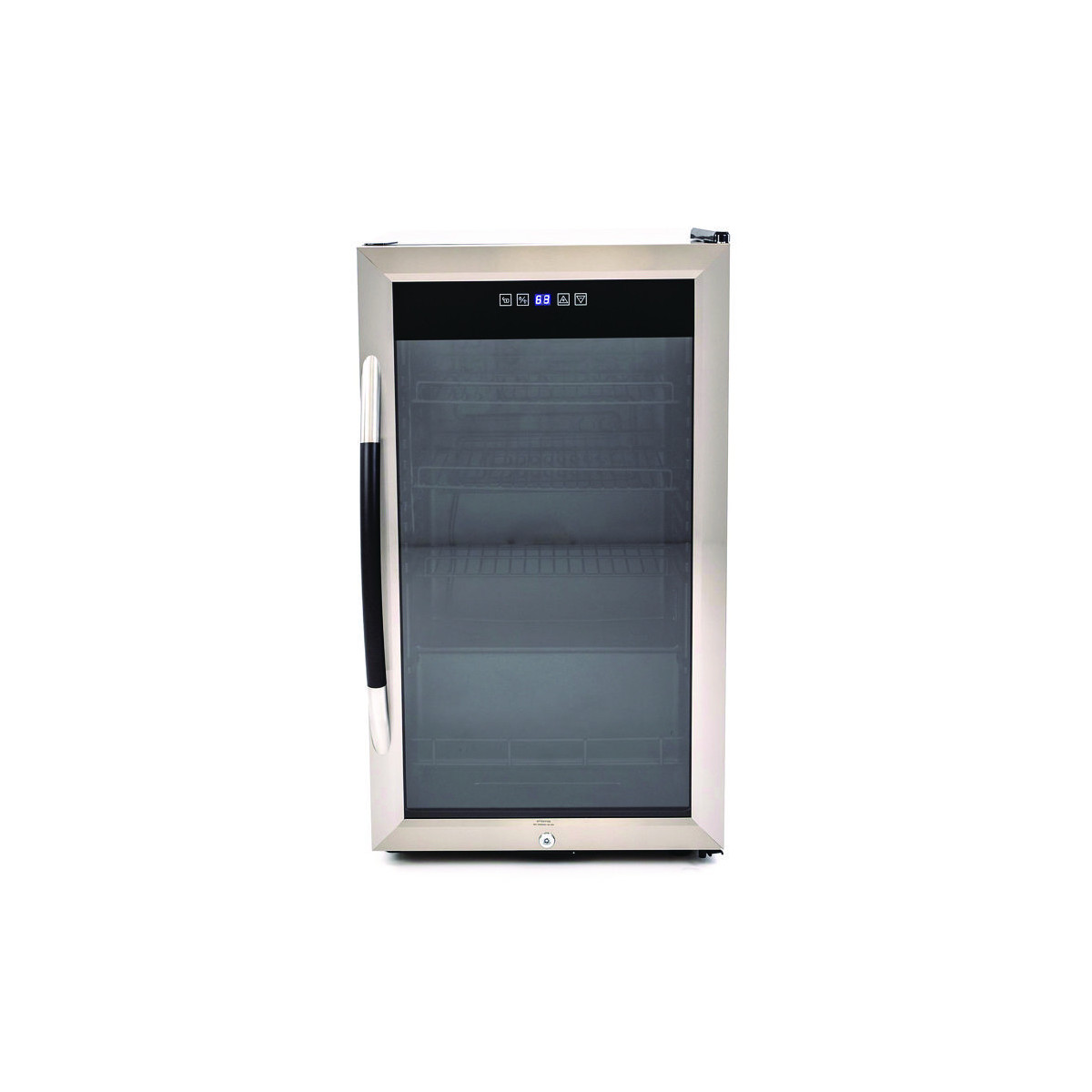 Keep your favorite drinks close by in this compact, 3 cubic feet beverage center fridge with stainless steel frame and double pane tempered glass door from Avanti. The perfect lockable mini fridge for the office, dorm, man cave, she shedt, bar, bedroom, or anywhere you need a little extra refrigerator cooling and storage space. Easily view your drink choices through the glass door. Use the adjustable, removable shelving to arrange drinks for easy access throughout the day. This compact fridge holds 108 12 oz cans and features automatic defrost, so your drinks stay perfectly chilled. Select the right settings at the touch of a button for your items with the electronic display.