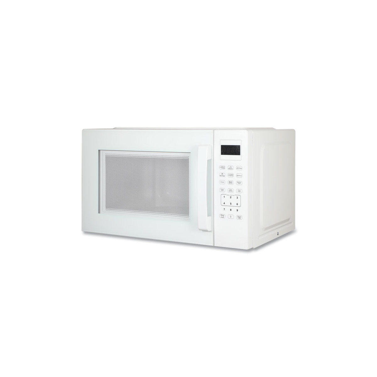Save counter space with this compact, 1.5 cubic foot, 1,000 watt microwave oven. Its compact footprint allows you to fit it into tight corners and onto cramped countertops, making it ideal for dorm rooms, offices, RVs, tiny homes or anywhere you might need to cook food fast. Electronic control panel features six "express" one-touch cook settings: Baked Potato, Beverage, Frozen Dinner, Pizza, Popcorn and Reheat for quick and easy operation. Standard cook by power level and time as well as defrost by weight and time functionality, along with a handy "Add 30-seconds" control round out your options. Removable glass turntable simplifies cleaning tasks.