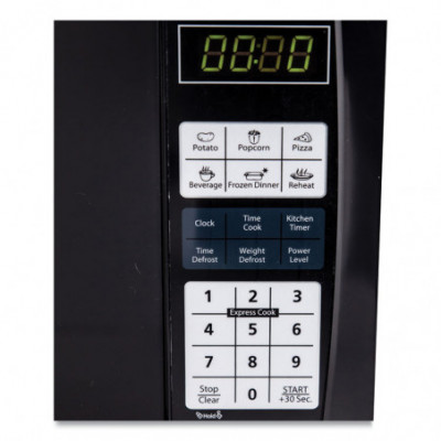 0.9 cubic foot countertop microwave oven is great for cooking small and medium-sized dishes. With 900 watts of power and a variety of one-touch cooking selections, delicious meals and snacks are just minutes away. The glass turn tray inside allows food to revolve during the cooking process for fast and even results and easy cleanup. The electronic touchpad also provides a convenient kitchen timer and child safety lock-out feature. The compact size and color can complement any kitchen decor.
