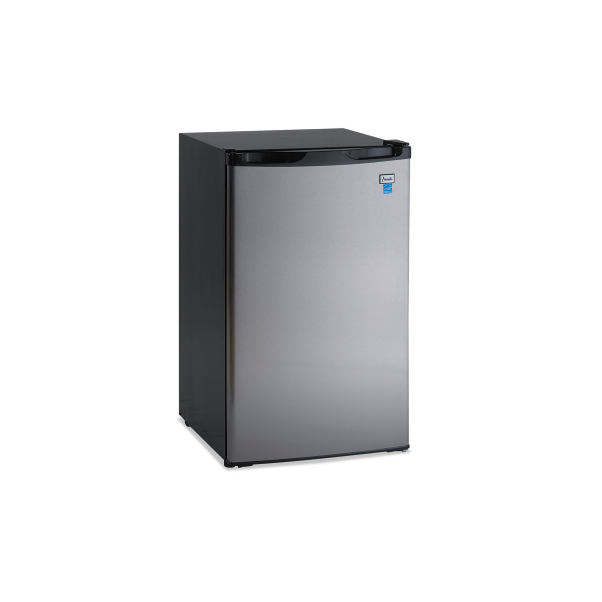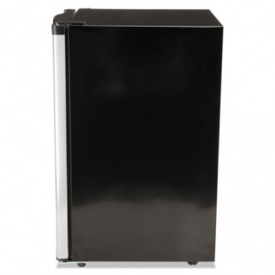 Convenient mini-fridge has adjustable slide-out shelves, so you can arrange the contents just the way you want them. Contains one full-width and two half-width door storage bins. A gallon-jug storage area in the lower door bin is perfect for larger bottles. A full-width chiller compartment is perfect for frozen meals and ice cream. Adjustable thermostat control with a push-button defrost mode. Leveling legs are adjustable, to accommodate odd or uneven flooring and a flat-back design allows for easy placement. An interior light makes it easy to grab what you want, even at night. Convenient reversible door.