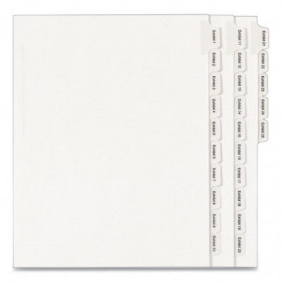 Preprinted Legal Exhibit Side Tab Index Dividers, Avery Style, 10-Tab, 18, 11 x 8.5, White, 25/Pack, (1018)