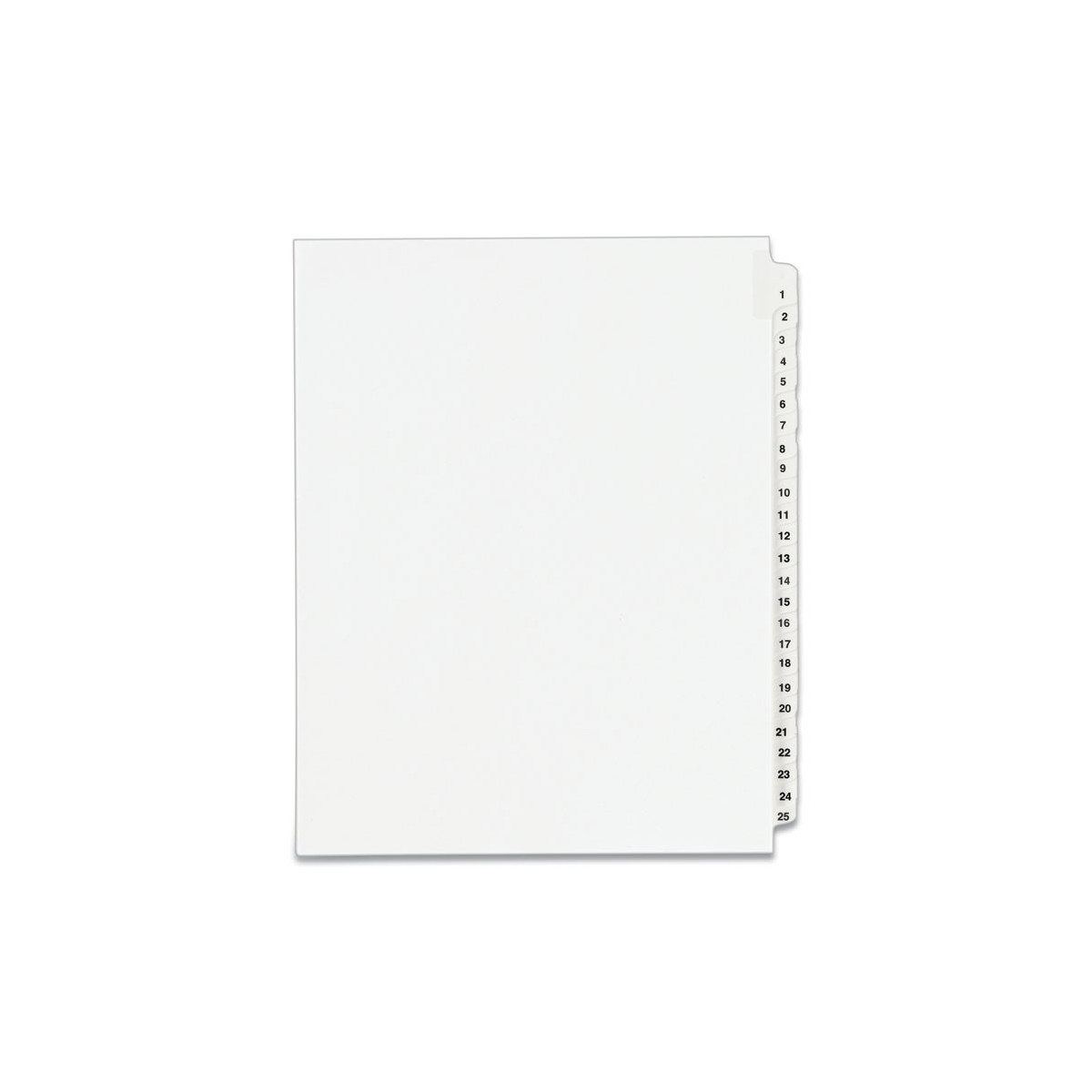 Use these dividers to organize index briefs, legal exhibits, mortgage documentation files and more. The crisp and clean white paper stock dividers give files a professional appearance. The durable Rip Proof™ reinforced tabs are preprinted on both sides so information can be located easily. The unpunched binding edges mean these indexes can fit practically any binding system.
