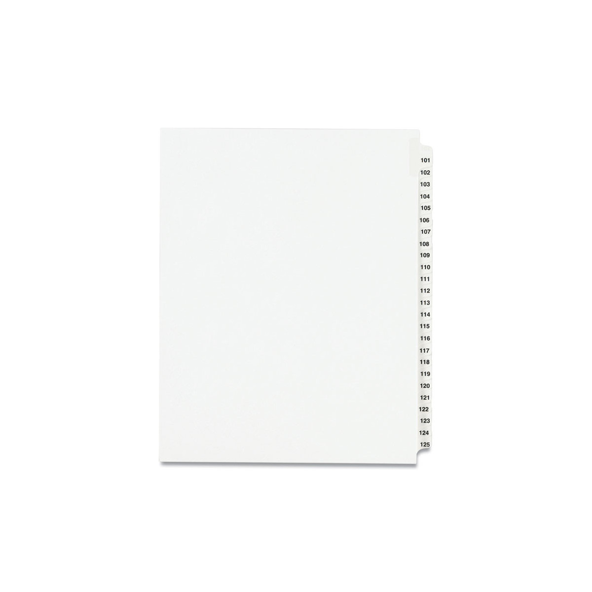 Preprinted Legal Exhibit Side Tab Index Dividers, Avery Style, 25-Tab, 101 to 125, 11 x 8.5, White, 1 Set, (1334)