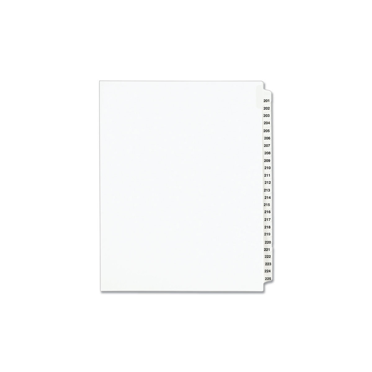 Preprinted Legal Exhibit Side Tab Index Dividers, Avery Style, 25-Tab, 201 to 225, 11 x 8.5, White, 1 Set, (1338)