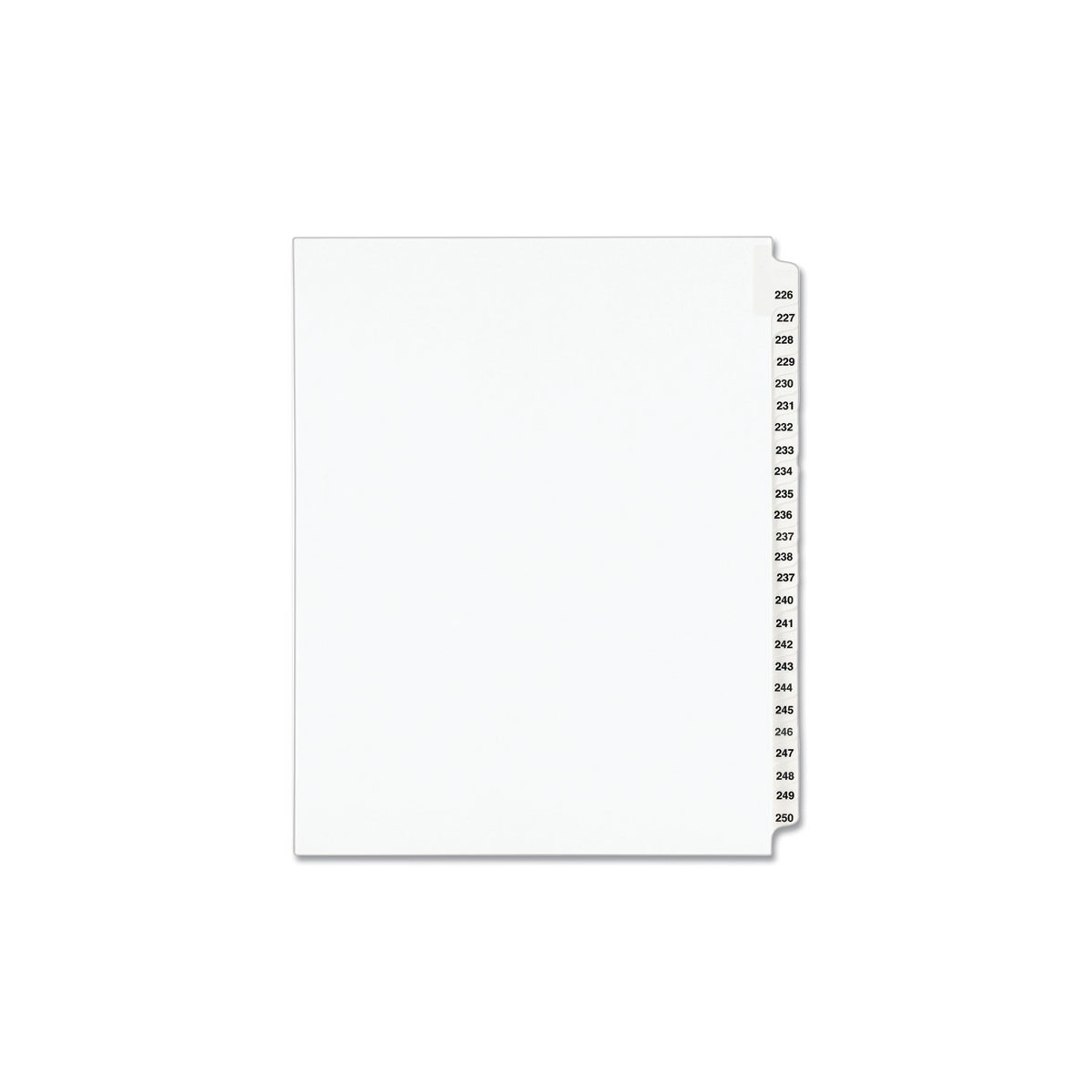 Preprinted Legal Exhibit Side Tab Index Dividers, Avery Style, 25-Tab, 226 to 250, 11 x 8.5, White, 1 Set, (1339)