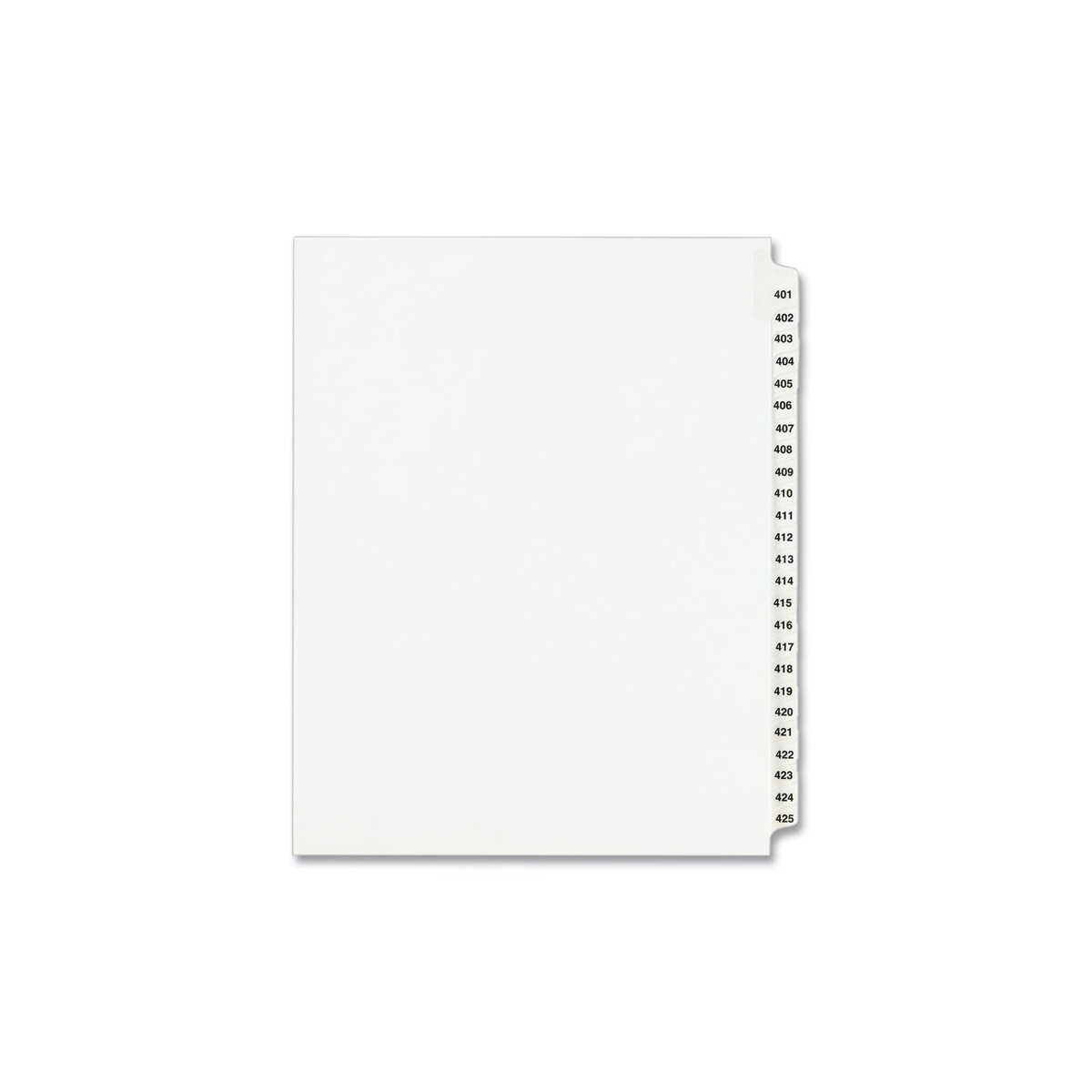 Preprinted Legal Exhibit Side Tab Index Dividers, Avery Style, 25-Tab, 401 to 425, 11 x 8.5, White, 1 Set, (1346)