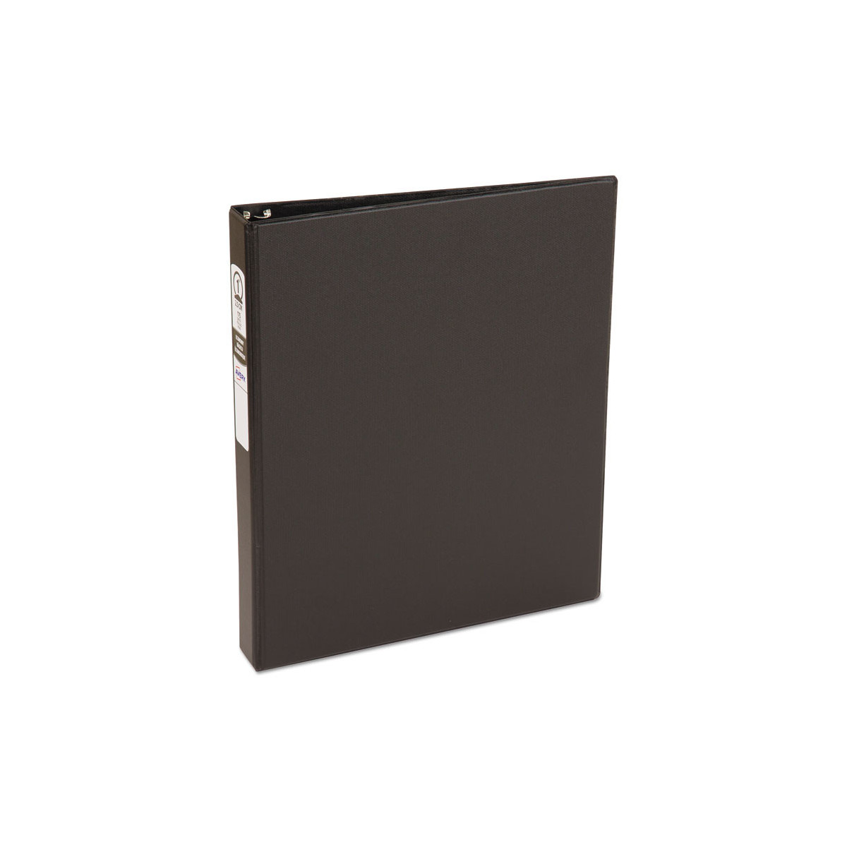Simple is the smart way to go. For convenient organization of your documents, it doesn't get much simpler than this handy Economy Binder. Three round rings hold papers to let you flip through notes, reports and more without getting your pages out of order. With room to spare, class notes, employee handbooks and other important papers will find a perfect home. Slip loose pages into the two interior pockets for easy access later. Rings are mounted on back cover for a clean spine and pages lie flat.