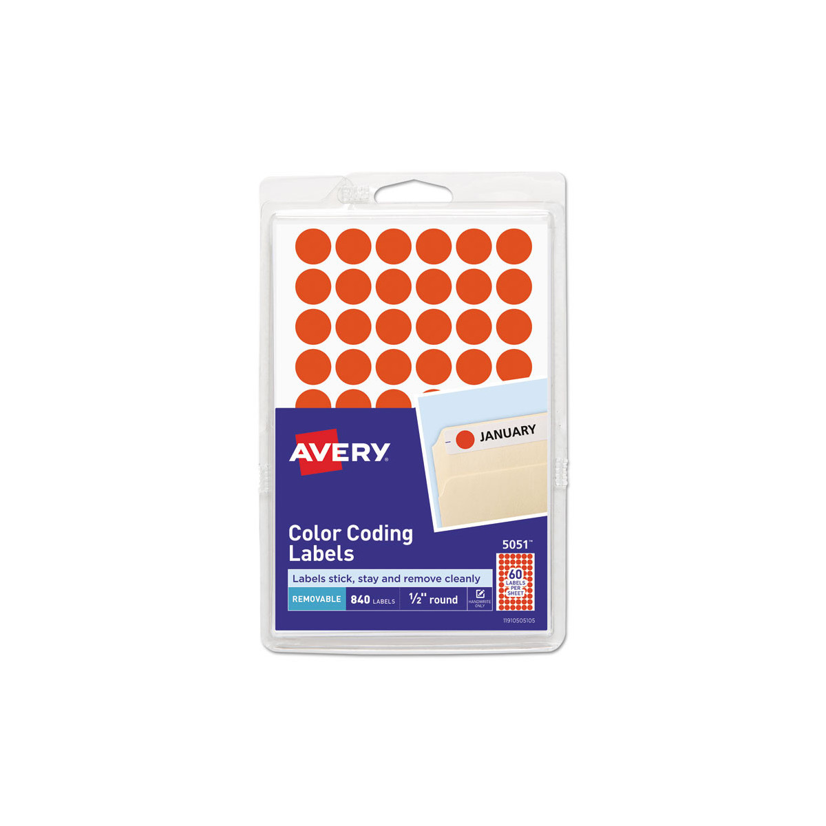 Handwrite Only Self-Adhesive Removable Round Color-Coding Labels, 0.5" dia, Neon Red, 60/Sheet, 14 Sheets/Pack, (5051)