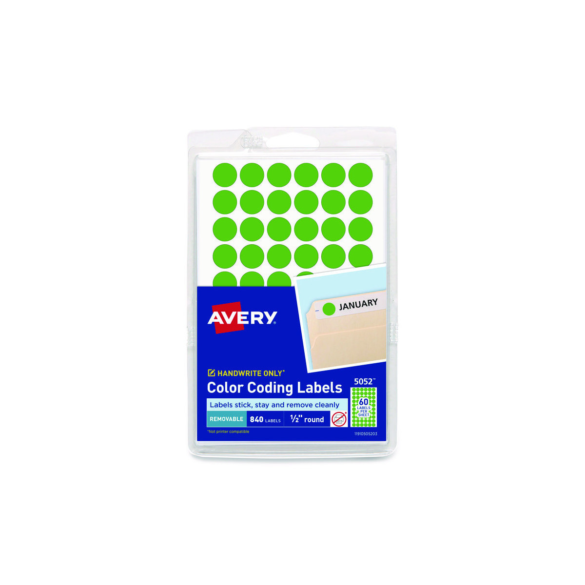 Handwrite Only Self-Adhesive Removable Round Color-Coding Labels, 0.5" dia, Neon Green, 60/Sheet, 14 Sheets/Pack, (5052)